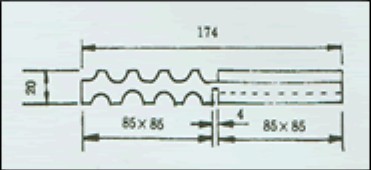 (长 X 宽 X 高 单位:mm)基本块为173 X 173 X 20 = 1块。|85 X 42.5 、85 X 85、131.5 X 85、174 X 85、220.5 X 85、263 X 85、174 X 174、263 X 174等,可以基本块为单位。根据需要任意拼装,每一基本块使用的橡胶硬度又分为40°、60°、80°、三种规格,以适应不同垂向设计负载。
