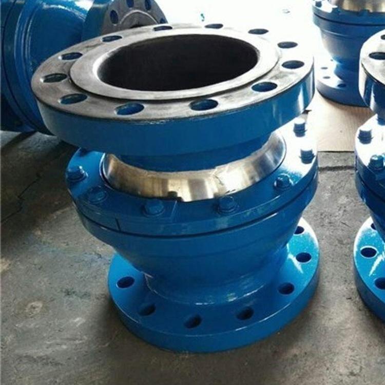 球形补偿器是利用补偿器的活动球形部分角向转弯来补偿管道的热变形,它允许管子在一定范围内相对转动,因而两直管可以不保持在一条直线上。